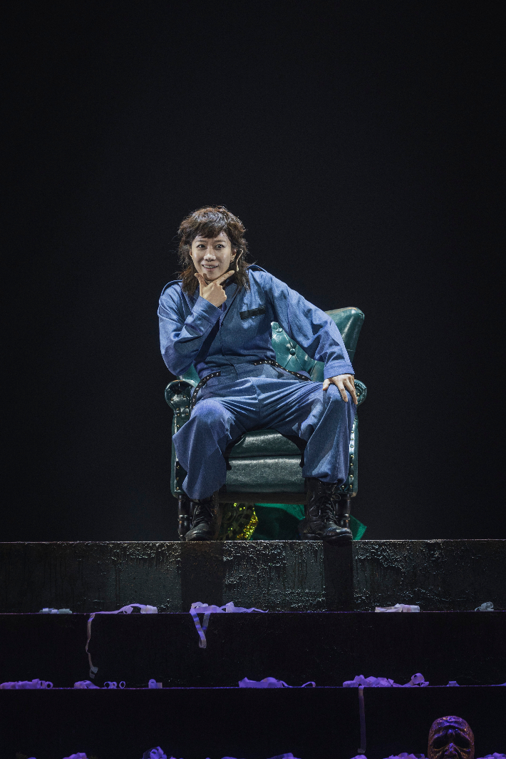 라이오스를 뒤에 태우고 오토바이를 타고 무대를 누비는 이오카스테의 모습은 공연장에 역동적인 에너지를 불어넣기도 했다.