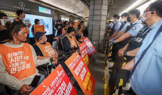 전장연 활동가들은 내년 정부 예산안에 장애인 권리예산이 반영되지 않았다는 이유로 탑승 시위를 벌여오고 있다.