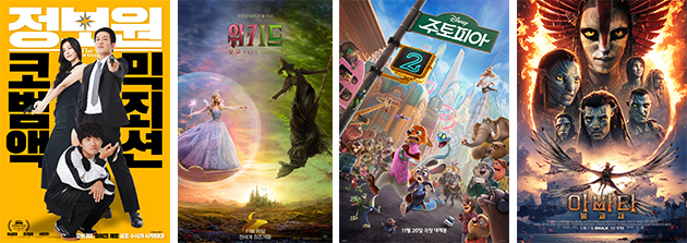 '정보원' '위키드: 포 굿' '주토피아2' '아바타: 불과 재' 포스터 |