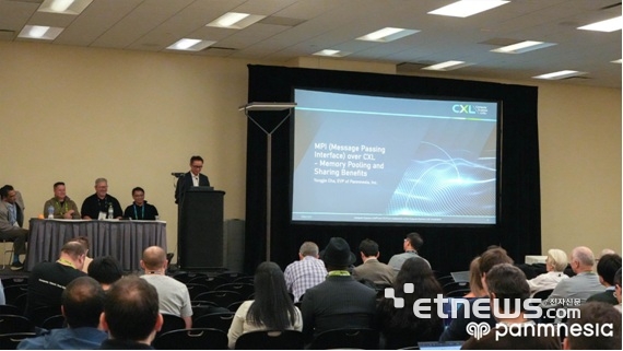 조용진 파네시아 부사장이 CXL 컨소시엄 공식 패널 세션에서 MPI-over-CXL 솔루션을 발표하고 있다. |