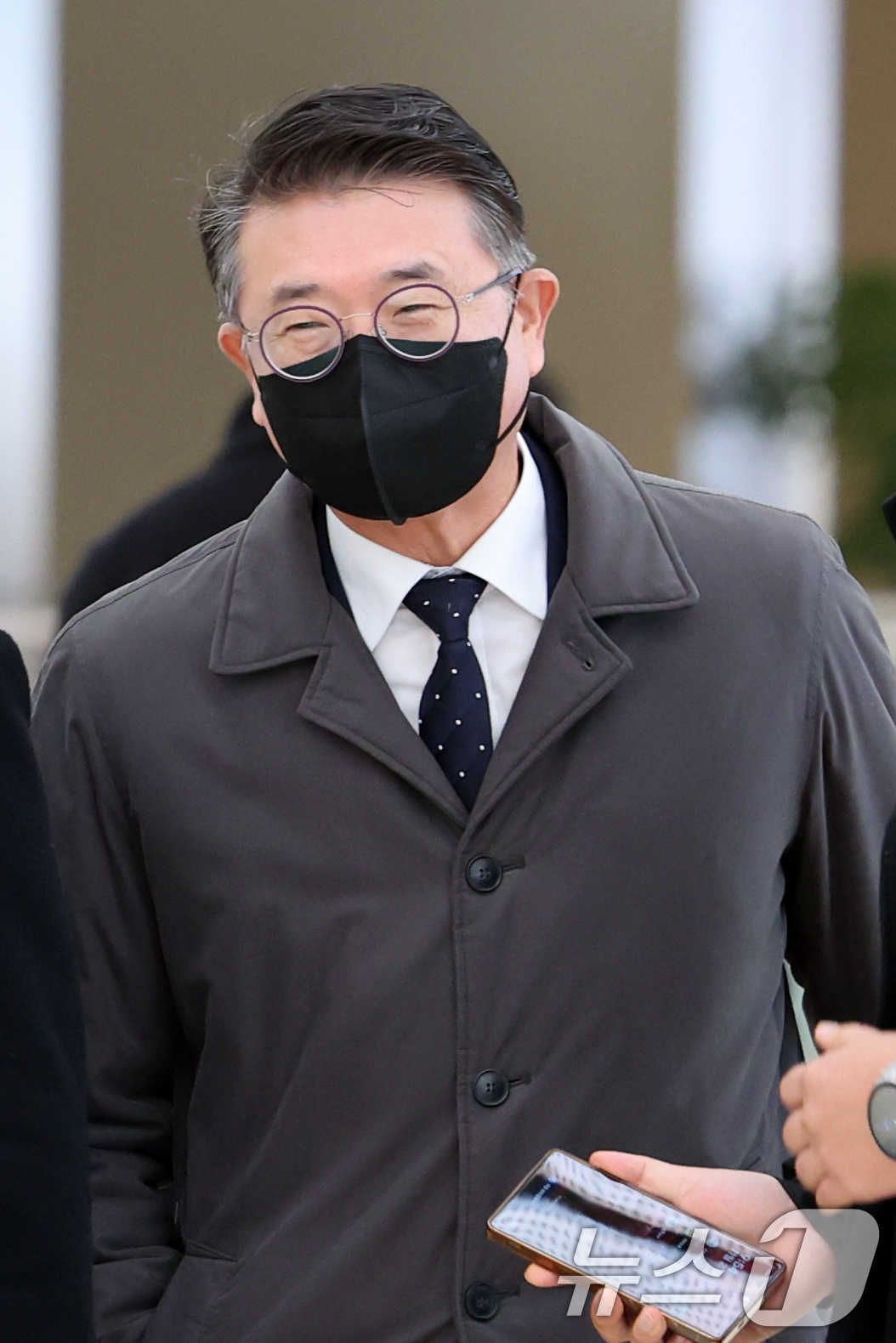 (서울=뉴스1) 황기선 기자 = 장상윤 전 교육부 차관이 25일 오전 서울 종로구 광화문 KT 빌딩에 마련된 김건희 특검(특별검사 민중기) 사무실에 참고인 신분으로 출석하고 있다. 장 전 차관은 김 여사의 '종묘 차담회 의혹'과 비서관 ‘자녀 학폭 무마 의혹'과 관련해 조사를 받는 것으로 알려졌다. 2025.11.25/뉴스1