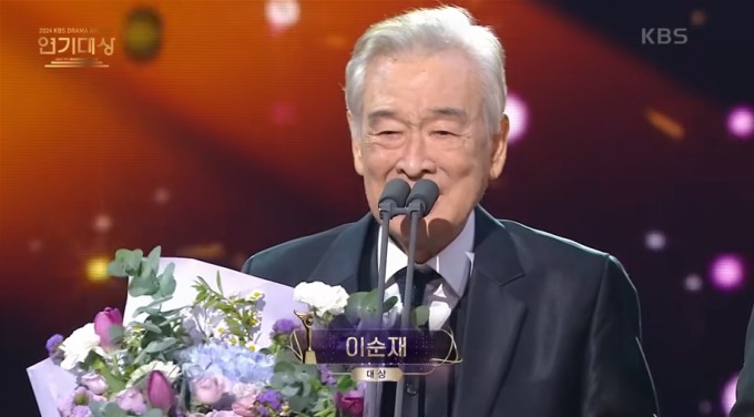 2024 KBS 연기대상을 수상한 배우 이순재. [사진=KBS 화면 캡처] |