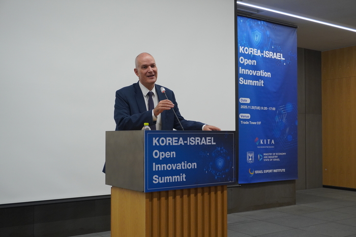 라파엘 하르파즈 주한 이스라엘 대사가 25일 열린 한·이스라엘 오픈이노베이션 서밋에서 발언하고 있다. <주한이스라엘대사관> |