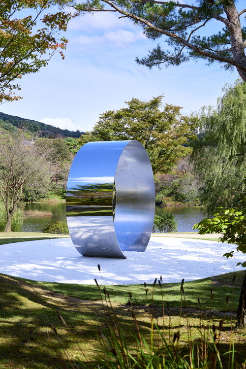 호수 건너편으로 눈을 돌리니 루이즈 부르주아의 유명한 '거미' 조각이 위용을 자랑한다. 2021년에 대형 크레인을 동원해 설치한 작품이다. 호수를 사이에 두고 한쪽에는 차가우면서 우아한 철판이, 다른 한쪽에는 부르주아의 강렬한 위엄을 뽐내는 거미가 서로 조응하며 강렬한 에너지를 내뿜고 있다. '관계항-만남'은 미완성 작품이다. 원래는 이 구조물 사이에 자연석 돌 두 개가 작품 사이에 설치돼야 하지만 작가는 아직 마땅한 돌을 찾지 못했다고 한다. 돌의 선택을 받지 못했다는 이유에서다. 완성을 기다리는 과정, 그 자체도 작품의 일부라는 철학이 담겨 있다.