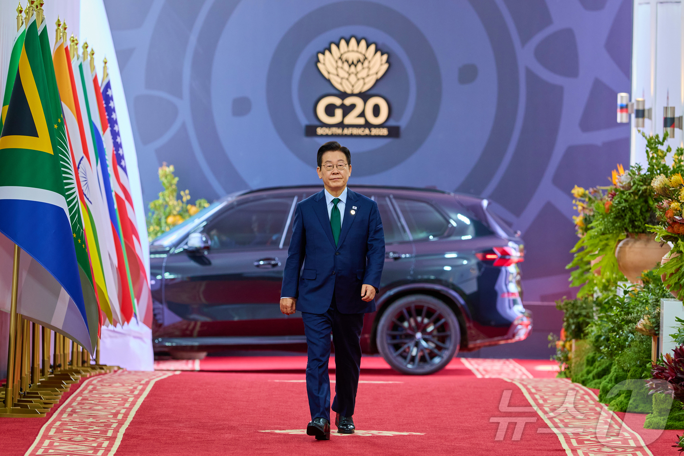 (서울=뉴스1) 이재명 기자 = 이재명 대통령이 23일(현지시간) 남아프리카공화국 요하네스버그 엑스포 센터에서 열린 G20 정상회의 제3세션에 입장하고 있다. (이재명 대통령 SNS. 재판매 및 DB 금지) 2025.11.25/뉴스1