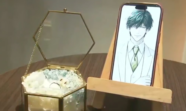 결혼식은 오카야마시의 한 웨딩업체가 제공하는 ‘2D 캐릭터 결혼식’ 서비스로 진행됐다. A씨는 순백의 웨딩드레스를 입고 증강현실(AR) 안경을 쓴 채 가상 신랑의 모습을 투사해 반지도 교환했다. 가족들도 결혼식에 참석한 것으로 알려졌다.