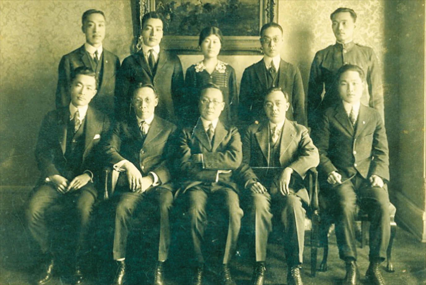 1920년 3월 미국 워싱턴DC 포틀랜드 호텔에서 구미위원부 인사들이 촬영한 사진. 이승만(앞줄 가운데), 김규식(그 오른쪽), 임병직(뒷줄 왼쪽에서 둘째), 김노디(그 오른쪽) 등이 보인다. /이승만대통령기념재단 |