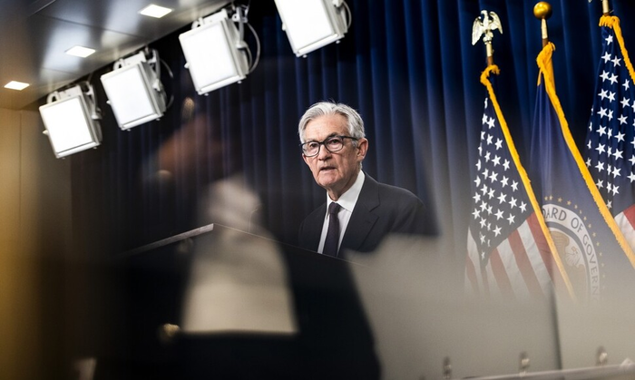 제롬 파월 미국 연장준비제도 이사회 의장이 FOMC에서 기자들과 대화하고 있다. [EPA 연합뉴스] |