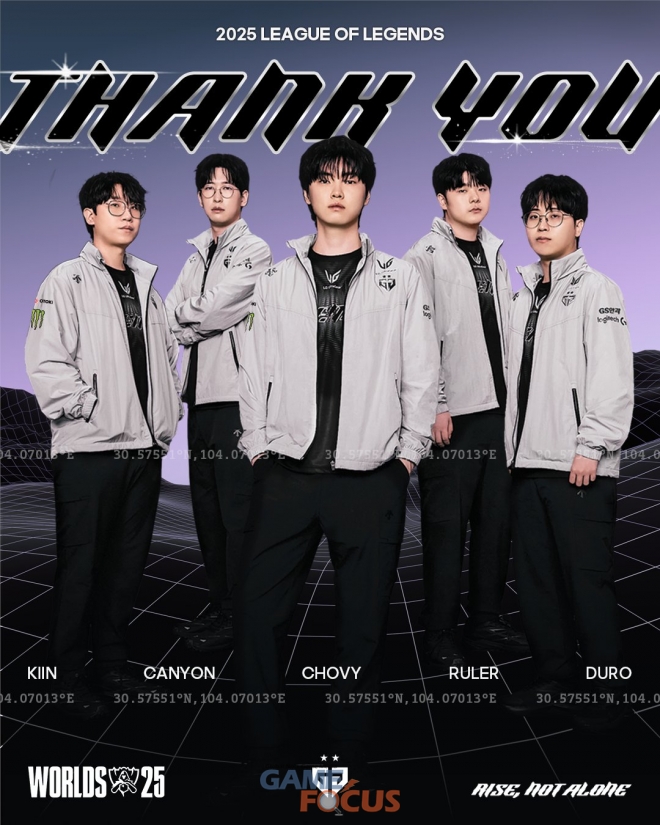 기인(김기인), 캐니언(김건부), 쵸비(정지훈), 룰러(박재혁), 듀로(주민규) 선수로 조합으로 올 한해 국내외 리그를 휩쓴 젠지. 비록 2025 LoL 시즌 대미를 장식하는 월드 챔피언십에서 아쉽게 4강 탈락의 고배를 마셨지만 일년 내내 이 로스터는 완벽에 가까울 정도의 강력함을 보였다는 것은 이견이 없을 것이다.
