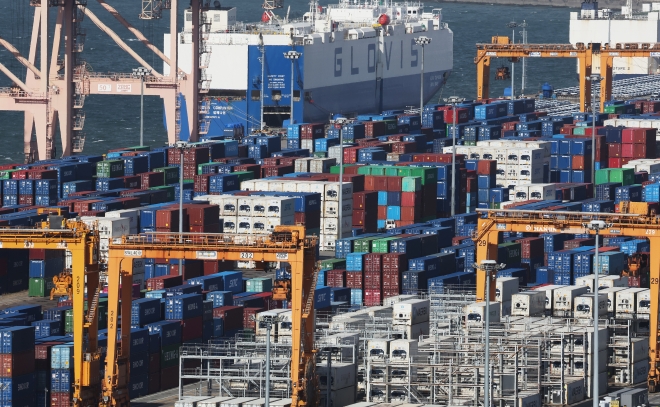 사진은 2일 경기도 평택항에 컨테이너가 쌓여 있는 모습. 2025.11.2. 평택 연합뉴스 |