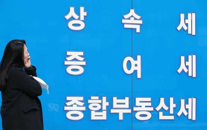 서울시내 한 세무사 사무실 앞 외벽에 종합부동산세 관련 문구가 적혀져 있다. [이충우 기자] |