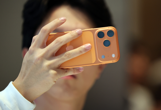 한 소비자가 '아이폰17프로 맥스'를 살펴보고 있다. 뉴스1 |