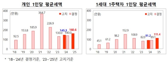한편 개인 1인당 종부세 평균세액은 160만6000원으로 전년도 평균세액보다 15만3000원(10.5%) 늘었다.