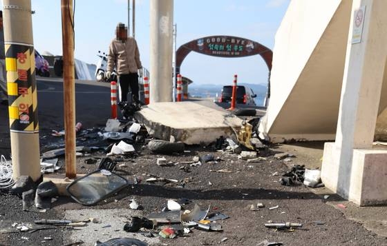 렌터카 승합차 돌진 사고 발생 이틀이 지난 26일 오전 제주시 우도면 우도 천진항 사고 현장에서 렌터카 업체 관계자들이 피해 차량을 정리하고 있다. [연합뉴스] |