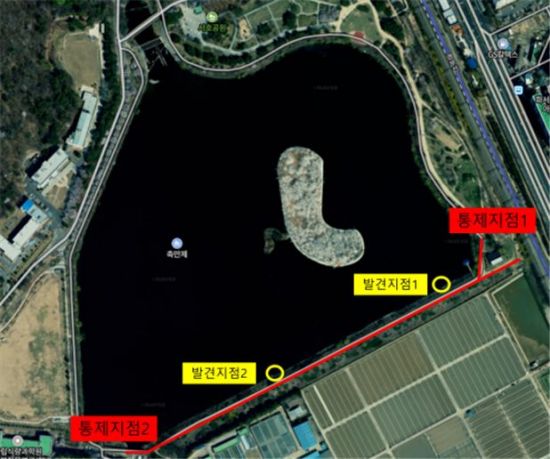 큰기러기 폐사체가 발견된 수원시 팔달구 축만제 위치 |