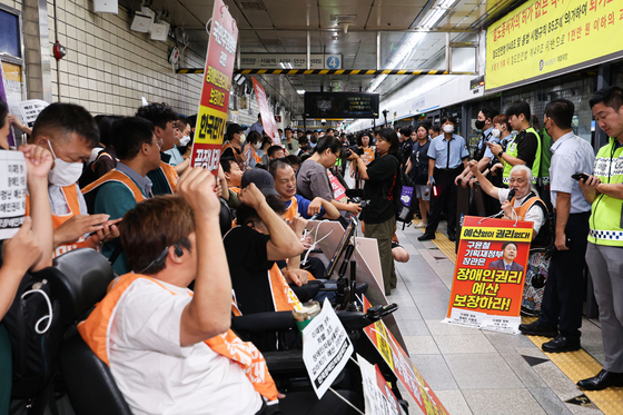 공사에 따르면 올해 들어 전장연 시위로 무정차 조치가 이뤄진 것은 이번이 최소 15번째다. 전장연은 장애인 권리 예산 보장을 요구하며 출근길 지하철에서 선전전을 이어가고 있다.