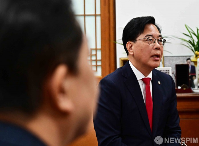 [서울=뉴스핌] 윤창빈 기자 = 송언석 국민의힘 원내대표가 27일 오전 서울 여의도 국회에서 열린 국회의장 주재 원내대표 회동에 참석해 모두발언을 하고 있다. 2025.11.27 pangbin@newspim.com |