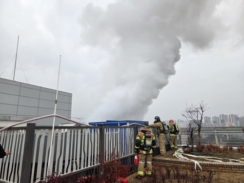 (세종=연합뉴스) 이주형 강수환 기자 = 27일 오전 11시 15분께 세종시 어진동 케이티앤지(KT&G) 세종타워에서 불이 났다.
