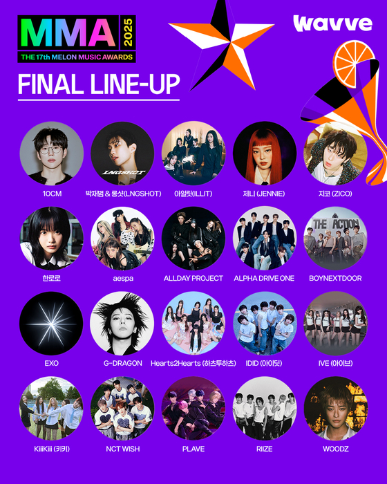 'MMA2025'는 개최 전부터 화려한 라인업으로 주목받고 있다. 지드래곤, 박재범, 10CM, 지코, EXO, 우즈, 제니, 에스파, 아이브, 한로로, 보이넥스트도어, 라이즈, 플레이브 등이 등장한다.