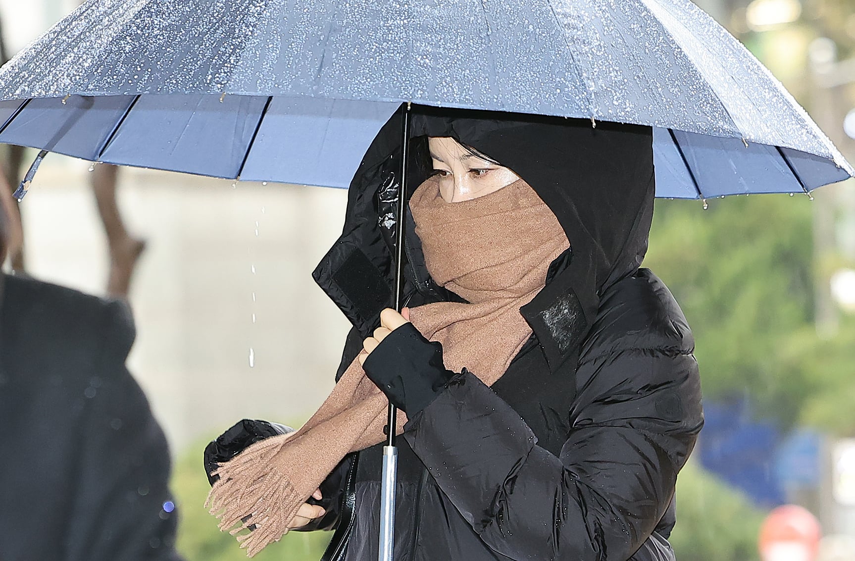 문다혜씨가 27일 오전 서울 서울서부지방법원에서 열린 항소심 1차 공판기일에 출석하고 있다. /뉴스1 |