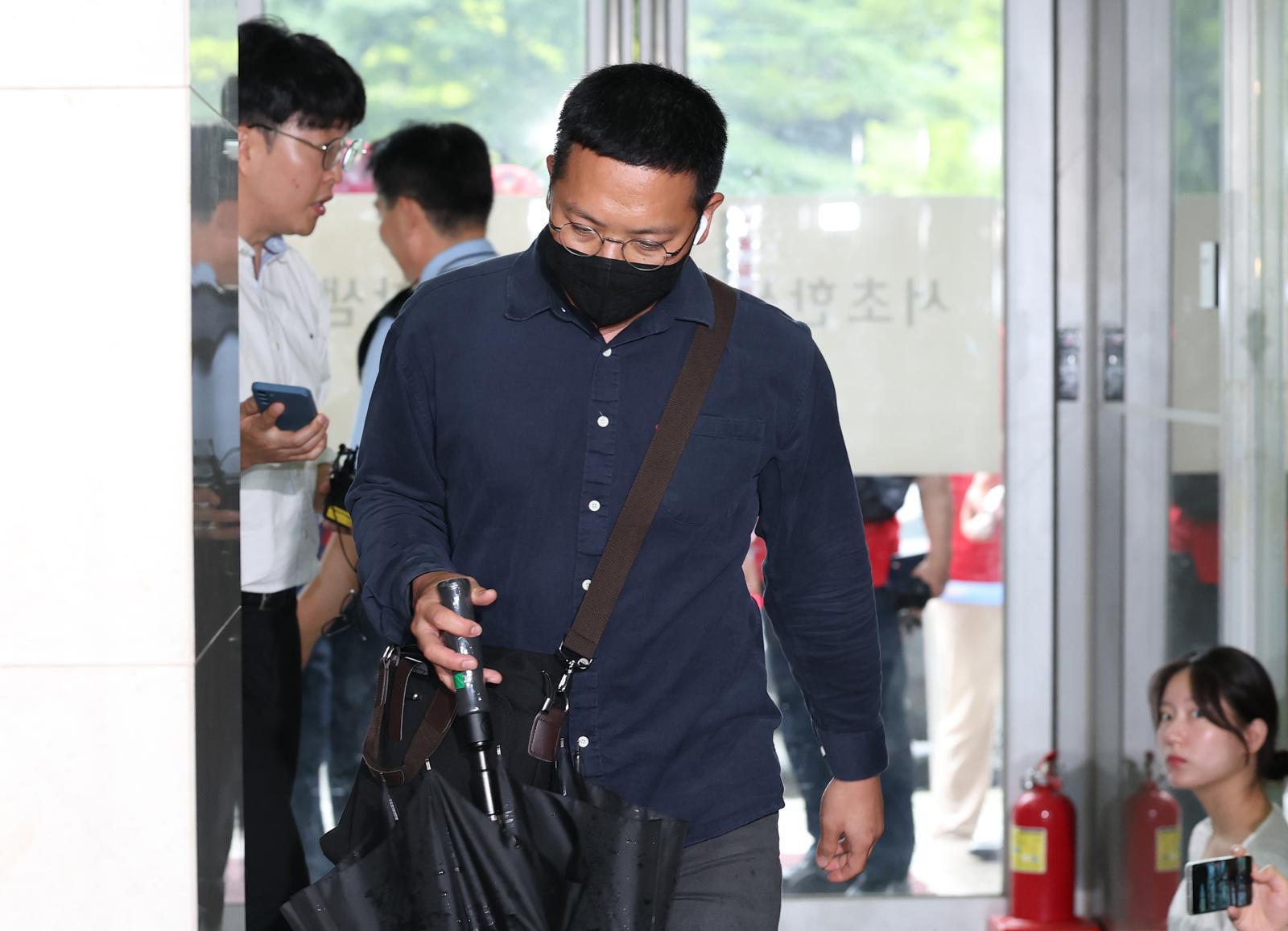 박정훈 대령에 대한 표적 수사 의혹을 받는 염보현 군 검사가 13일 오후 서울 서초구 ‘순직 해병 특검’(이명현 특별검사) 사무실에 피의자 신분으로 출석하고 있다. 2025.8.13 뉴스1 |