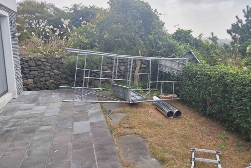 또 앞서 오전 11시 9분께 제주시 노형동의 한 도로에서 신호등이 떨어지고, 오전 10시 59분께 서귀포시 강정동의 한 도로에서 반사거울이 쓰러져 깨지는 등 총 4건의 사고가 접수됐다.