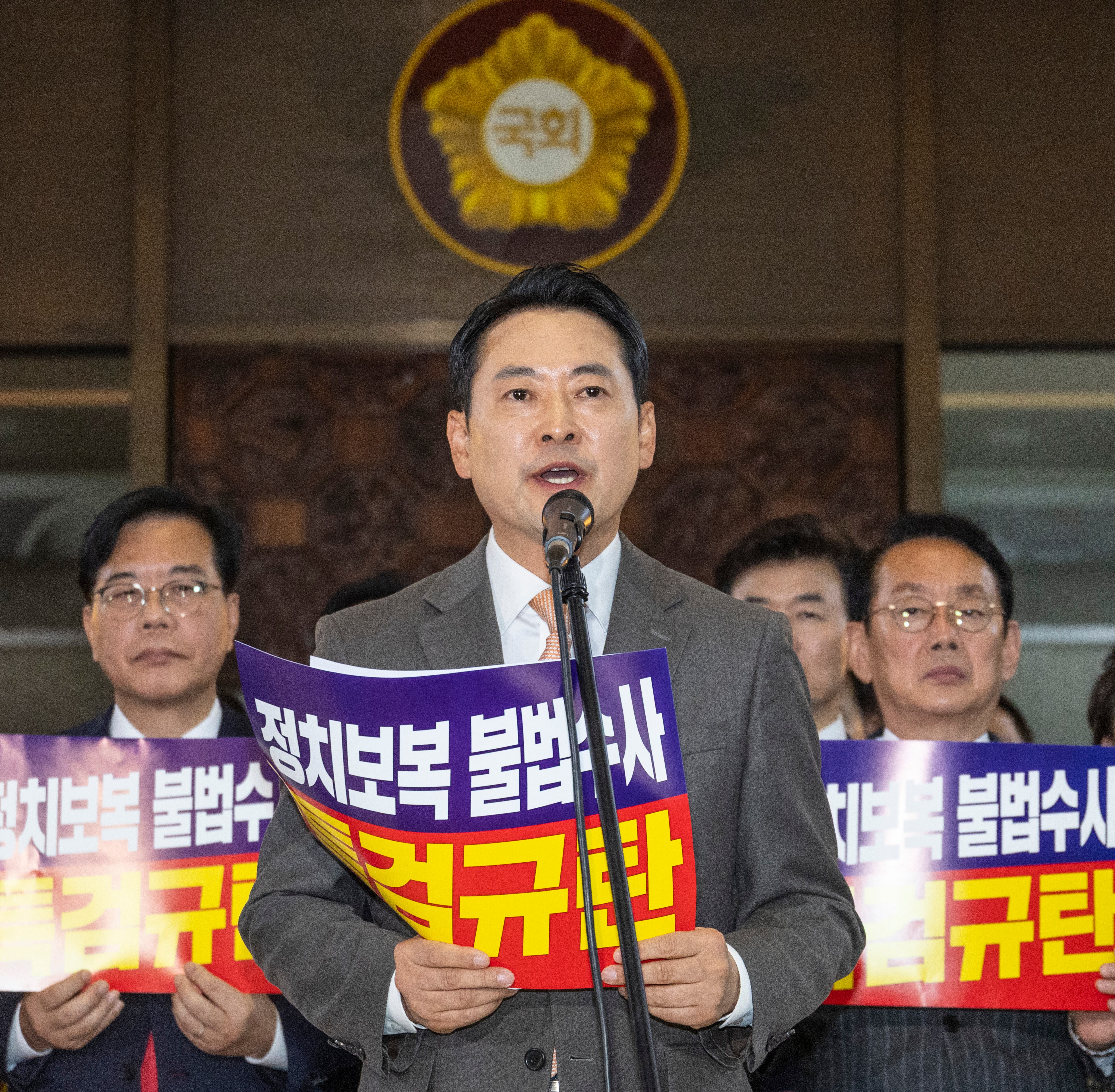송언석 원내대표는 “조은석 정치 특검은 역사 앞에 무릎 꿇고 심판을 받아야 할 것”이라며 “수사를 하는 것이 아니라 인격 살인을 한 것이다. 조작을 한 것이다. 국민이 용납하지 않을 것”이라고 했다.