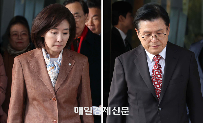 나경원 국민의힘 의원과 황교안 자유와혁신 대표가 지난 20일 서울 양천구 서울남부지법에서 열린 ‘자유한국당 패스트트랙(신속처리안건) 충돌 사건’ 1심 선고 공판을 마치고 법원을 나서고있다. [한주형 기자] |