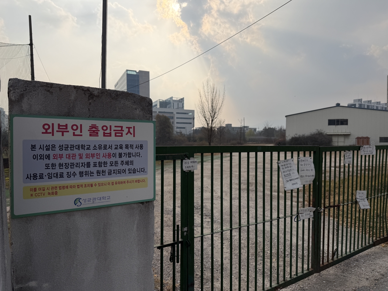 24일 찾은 서울 도봉구 성균관대 야구장 부지 입구. 윤성현 기자 |