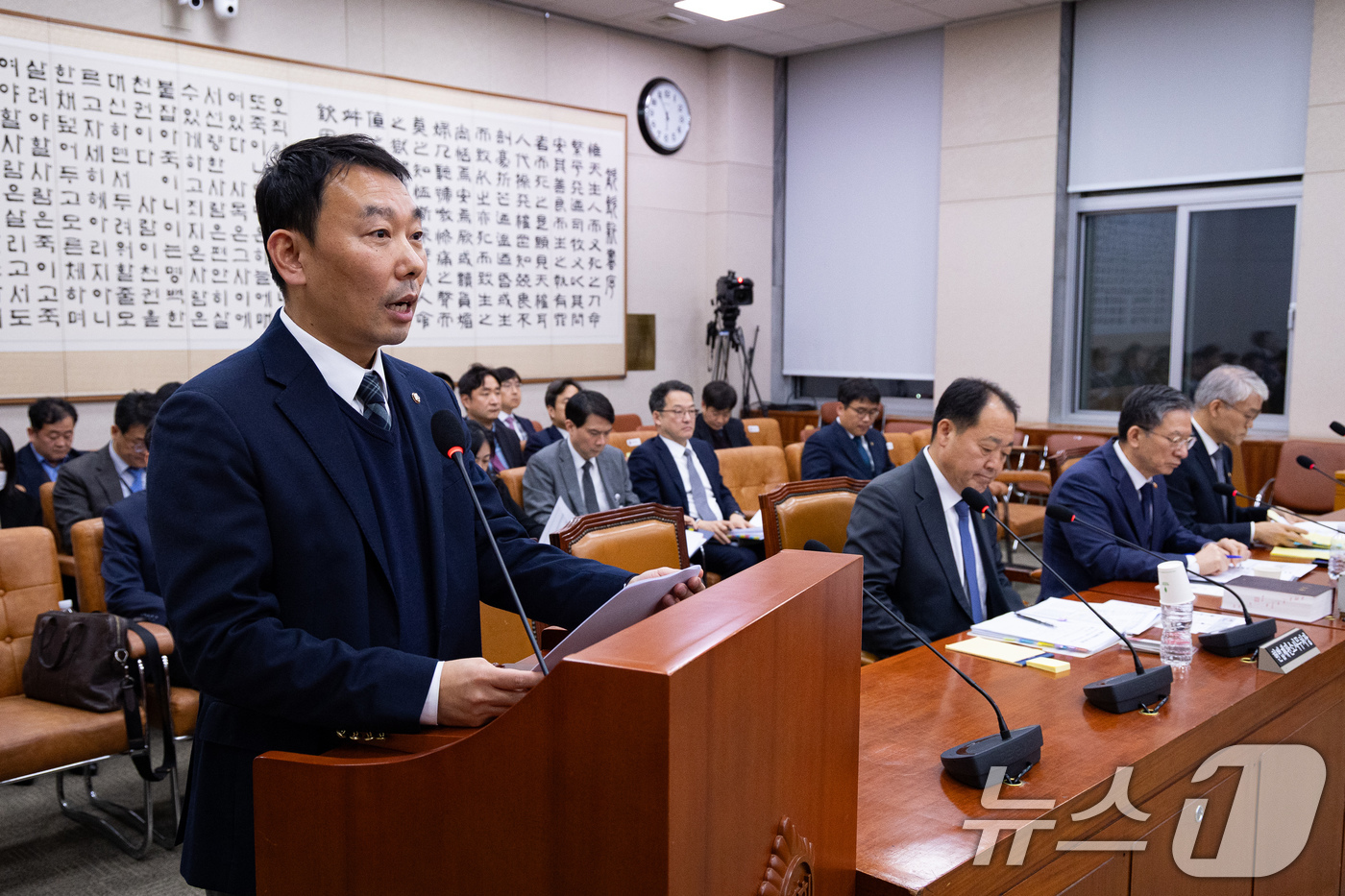 김용민 법안심사제1소위원장이 지난 26일 서울 여의도 국회에서 열린 제429회 국회(정기회) 법제사법위원회 제15차 전체회의에서 심사보고를 하고 있다. 2025.11.26/뉴스1 ⓒ News1 유승관 기자 |