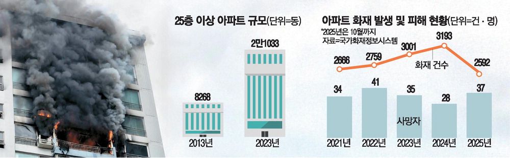 지난 26일 홍콩 웡 푹 코트 아파트 단지 화재로 인해 한국에서 아파트 화재에 대한 경각심이 커질 전망이다. 국내에서도 아파트 화재가 자주 발생하는 데다 고층 아파트가 늘어나는 추세라 화재 시 대처에 어려움을 겪을 수 있기 때문이다.
