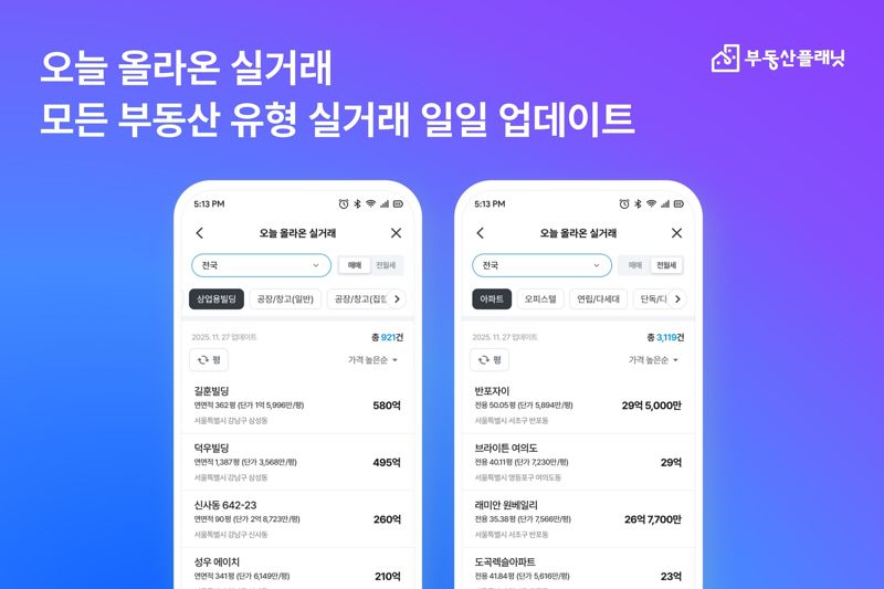 이용자는 부동산플래닛 웹사이트나 앱의 '실거래가' 메뉴 내 '오늘 올라온 실거래' 코너에서 최신 거래 내역과 건축물대장 동·층·호를 기반으로 산출된 AI 시세 정보를 확인할 수 있다. 부동산플래닛은 향후 12월에 최신 데이터와 AI 시세 알고리즘을 적용한 'AI 부동산 에이전트'를 선보여 맞춤형 상담을 제공할 예정이다.