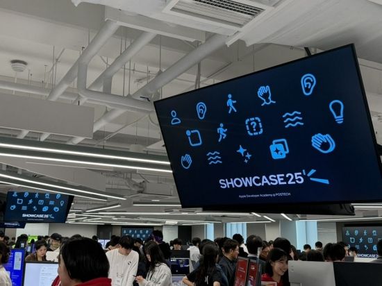 27일 경북 포항시의 포항공과대학교(포스텍)에서 애플 디벨로퍼 아카데미 쇼케이스가 진행되고 있다. 이명환 기자 |