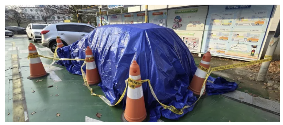 충북 청주에서 장기실종된 여성의 SUV가 27일 오전 충북경찰청의 한 주차장에 보관돼 있다. 경찰은 전날 충주호에서 이 SUV를 인양했다. 연합뉴스. |