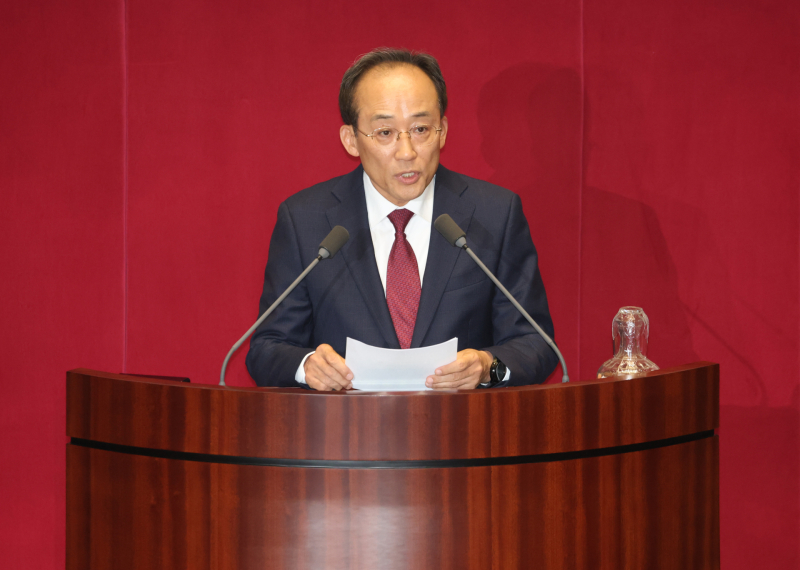 계엄 해제 의결을 방해한 혐의로 구속영장이 청구된 추경호 국민의힘 의원이 27일 국회 본회의장에서 자신의 체포동의안 표결을 앞두고 신상발언을 하고 있다. 연합뉴스 |
