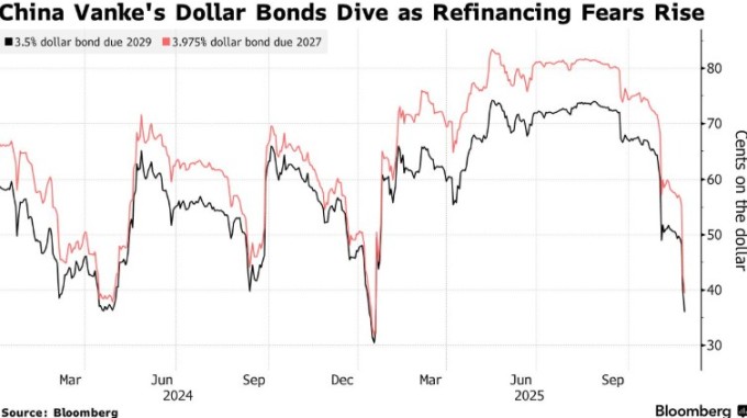 이는 이미 이번 주 급락했던 채권 및 주가에 압박을 가중시켰다. 2027년 만기 도래하는 완커의 10억달러 규모 달러화 채권은 목요일 액면가 대비 23센트까지 급락해 블룸버그 집계 자료에 따르면 이번 주 약 60%의 손실을 기록했다.