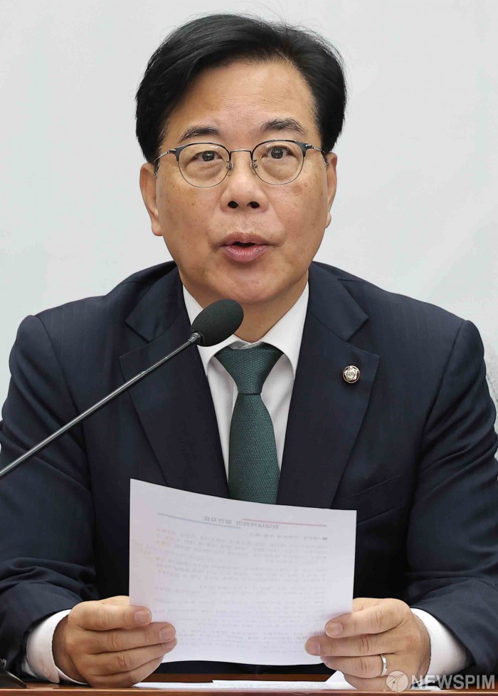 [서울=뉴스핌] 윤창빈 기자 = 송언석 국민의힘 원내대표가 28일 서울 여의도 국회에서 열린 원내대책회의에서 모두발언을 하고 있다. 2025.11.28 pangbin@newspim.com