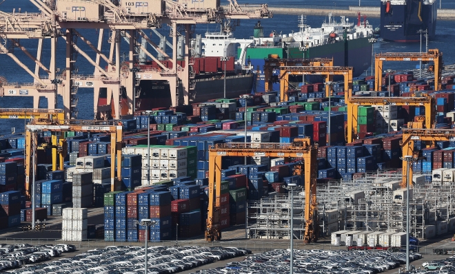 14일 경기도 평택항에 컨테이너가 쌓여 있는 모습. 연합뉴스 |