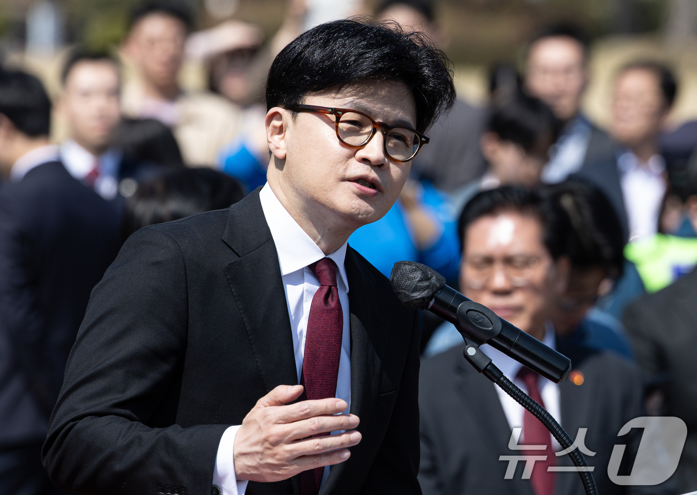 한동훈 국민의힘 전 대표가 10일 오후 서울 여의도 국회에서 제21대 대통령선거 출마 선언 기자회견을 하고 있다. 2025.4.10/뉴스1 ⓒ News1 이재명 기자 |
