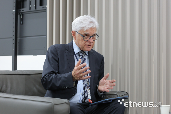 데틀레프 쥘케(Detlef Zuhlke) 박사가 지난 27일 서울 강남구 삼성동 코엑스에서 열린 'AIoT 위크 코리아'에서 본지와 만나 인터뷰를 하고 있다. |
