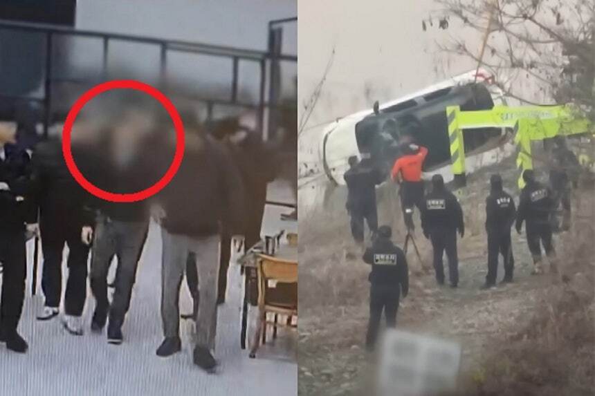 지난 26일 전 연인인 장기 실종 여성을 살해한 혐의로 충북 진천군의 한 식당에서 긴급 체포된 50대 김모씨. 오른쪽은 실종된 여성의 SUV가 충북 충주시 목벌동의 충주호에서 인양되는 모습. 사진=JTBC 방송화면 갈무리 |
