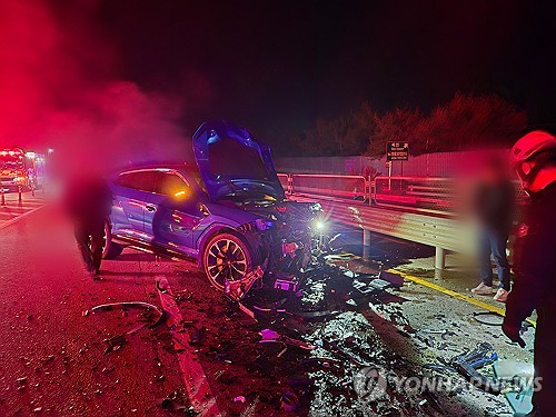 (정읍=연합뉴스) 임채두 기자 = 29일 0시 28분께 전북 정읍시 북면의 한 교차로 인근에서 역주행하던 폭스바겐 승용차가 마주 오던 람보르기니 승용차와 충돌했다.
