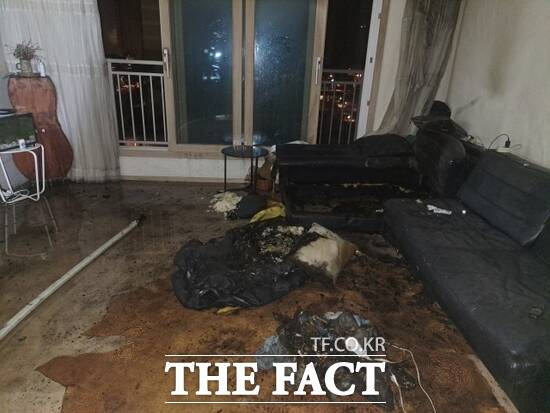29일 오전 3시 33분쯤 경기 파주시 동패동의 한 아파트 5층에서 화재가 발생한 가운데 불길이 진화된 뒤 해당 가정 모습. /경기북부소방재난본부 |