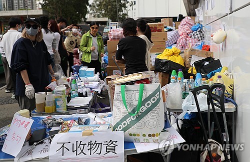 29일 오전 11시쯤(현지시간) 홍콩 북부 타이포마켓역 앞에서 만난 자원봉사자 황모(37)씨는 연합뉴스 기자에게 "기부를 하기엔 경제적으로 여유가 없어 봉사라도 해야겠다는 생각에 왔다"라며 이렇게 말했다.