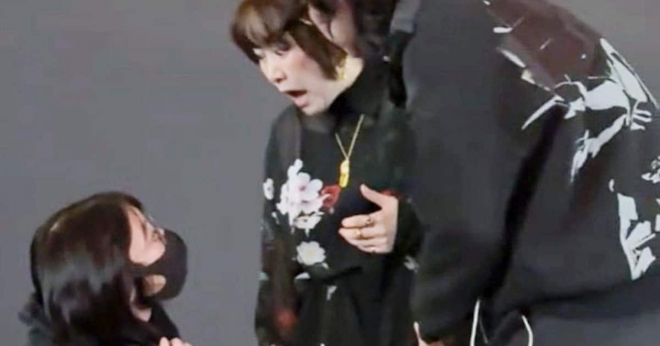 공연이 중단된 뒤 무대 조명이 다시 켜지고 제작진이 올라와 오쓰키 마키에게 무언가를 전달하고 함께 무대 밖으로 이동하는 장면. 출처=엑스 |