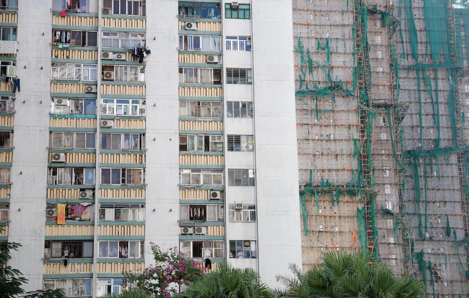 29일(현지시간) 홍콩 북부 타이포의 ‘왕 푹 코트’(Wang Fuk Court) 아파트 화재 건물 옆 아파트 창문이 열려 있다. 2025.11.29/뉴스1 ⓒ News1 |