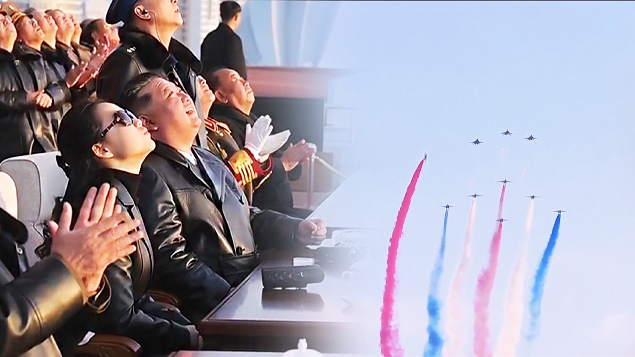 선글라스를 낀 주애는 김 위원장과 함께 하늘을 올려다봅니다.