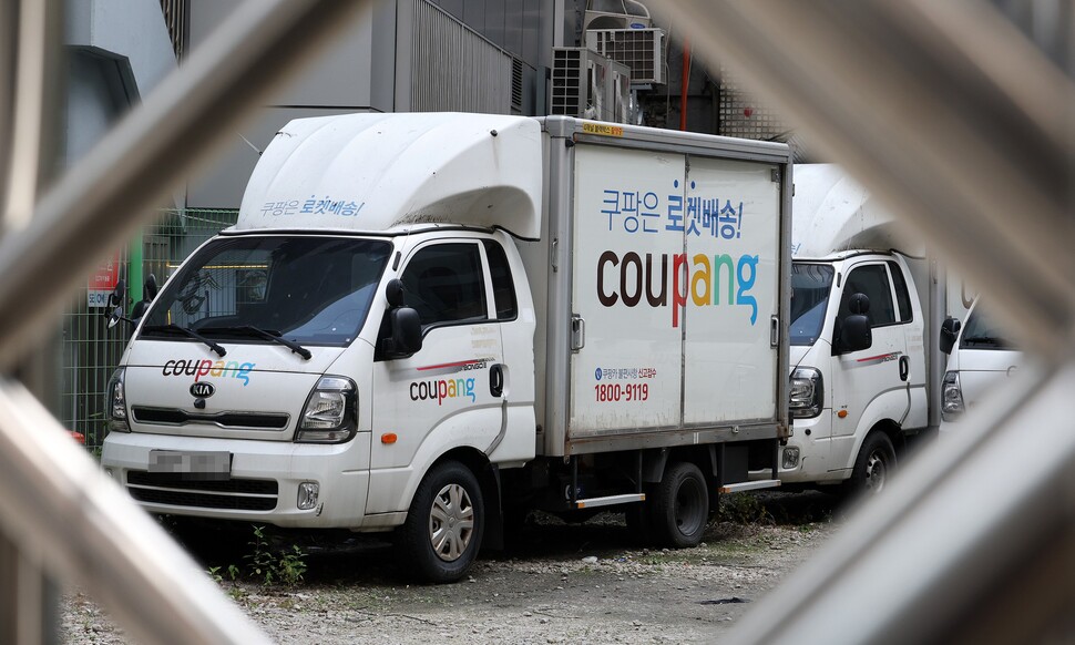 30일 오후 서울 중구 한 쿠팡 차고지에 차량들이 주차되어 있다. 쿠팡은 개인 정보가 유출된 고객 계정 수가 3370만개로 확인됐다고 밝혔다. 최현수 기자 emd@hani.co.kr |