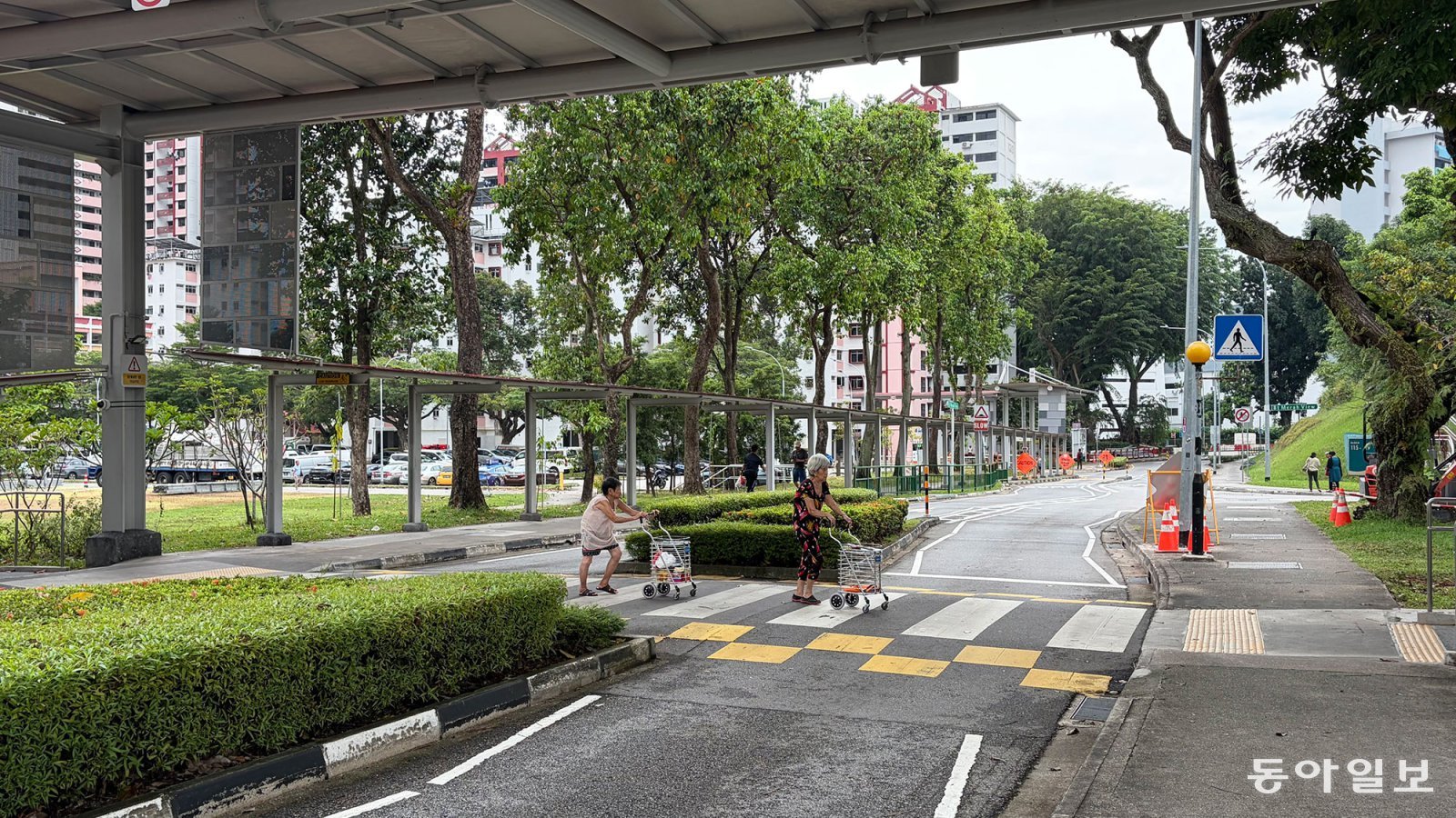 10월 27일(현지 시간) 싱가포르 부킷메라뷰 ‘실버존(노인 보호 구역)’. 차 한 대가 겨우 지나갈 정도로 좁고 구불구불한 도로를 따라 차들이 서행했다. 빠른 속도로 실버존에 진입한 차도 굽이진 도로 때문에 속도를 줄일 수밖에 없었다. 실버존에 진입하는 차량이 자연스럽게 속도를 늦추도록 교차로를 ‘T’자가 아닌 ‘Y’자로 조성하는 등 여러 과속 방지 장치가 마련돼 있었다. 주민 재닛 추아 씨(64)는 “여기선 보행자가 보호받는 느낌이 든다”고 말했다.
