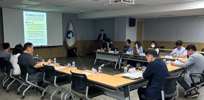 지난 8월 5일 춘천시청 지하 1층 민방위교육장에서 이원찬 스마트도시국장, 한성희 스마트도시과장, 이정욱 기업혁신파크팀장 등 11명이 참석한 가운데 은퇴자마을 특별법(안)과 관련 사업 내용을 공유하고 분야별 지원정책과 제안사항을 논의했다. 춘천시 제공 |